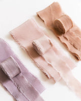 Our Silk Classic Ribbon always sits at the head table as part of our Signature Color collection. Made from 100% mulberry silk, this hand-dyed, medium-weight ribbon has a dreamy drape, oh-so-subtle sheen, and matte finish. Plus, it’s got a hand-frayed edge and a boujee crinkled texture that is sure to break hearts.