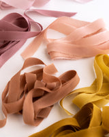 Catch bouquets, not feelings with our Silk Ribbon Trim: Our thinnest ribbon with our most refined, hand-frayed raw edge. This ribbon is the kid sister to our Silk Classic Ribbon, perfect for detail work, like bouquets, boutonnieres, and stationery. Try not to swoon, we dare you.