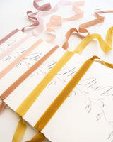 Catch bouquets, not feelings with our Silk Ribbon Trim: Our thinnest ribbon with our most refined, hand-frayed raw edge. This ribbon is the kid sister to our Silk Classic Ribbon, perfect for detail work, like bouquets, boutonnieres, and stationery. Try not to swoon, we dare you.