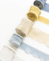 Our Silk Classic Ribbon always sits at the head table as part of our Signature Color collection. Made from 100% mulberry silk, this hand-dyed, medium-weight ribbon has a dreamy drape, oh-so-subtle sheen, and matte finish. Plus, it’s got a hand-frayed edge and a boujee crinkled texture that is sure to break hearts.