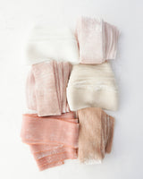 Meet our Silk Velvet Ribbon: Buttery soft, it’ll melt the coldest of hearts. It’s our heaviest-weight ribbon, mixed with rayon for a sexy texture. Our vow? Soft, romantic colors, but make them luxe, thanks to a velvety sheen on one side and hand-frayed raw edges. Well, color us intrigued.
