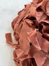 Item #498 is a Silk Classic Ribbon in a red brown color. It's made with 100% Silk Crepe, has a lightweight feel with a matte texture. This is a one-of-a-kind, single batch color, and will not be available for purchase after selling out. This item ships in as-is condition, without our signature packaging, making it possible for us to pass along a deeper discount to you.