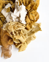 Our Silk Ribbon Remnant bundles are the product of our single-batch, one-off ribbon dyeing process, they’re as one-of-a-kind as it gets. No re-dos or re-orders. Unique and perfect for one-of-a-kind projects, from florals and stationery styling to gift wrapping and weaving.