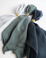 Each scarf is approximately 23 inches x 23 inches and comes packaged in our signature sustainable paper tube with a Brass Scarf Slide and our How To Scarf Style Guide.