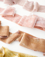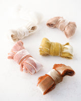 Meet our Silk Velvet Ribbon: Buttery soft, it’ll melt the coldest of hearts. It’s our heaviest-weight ribbon, mixed with rayon for a sexy texture. Our vow? Soft, romantic colors, but make them luxe, thanks to a velvety sheen on one side and hand-frayed raw edges. Well, color us intrigued.