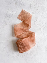 Our Silk Bubble Ribbon is like a playful dance of bubbles frozen in time on a luxurious silk ribbon. Made from 100% mulberry silk, this hand-dyed, light-weight ribbon exudes an air of playful elegance, perfect for adding a touch of sophistication to any gift or occasion. Its unique texture and design make it a delightful addition to any ribbon collection.