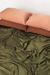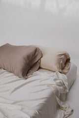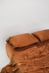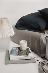 If you think silk sheets are reserved for royalty, think again. Our 100% Mulberry silk sheets are the most practical investment you could make in your bedroom: They stand up to co-sleeping with kids (*cough* and dogs), questionable stains, and machine-washing. They’re naturally hypoallergenic and temperature-regulating, and they don’t suck the hydration from your skin and hair like cotton does (thanks, cotton). Plus, they’re impossibly soft thanks to our proprietary peachskin process—it takes an extra three hours to make each set of sheets, but we like to think the buttery soft matte finish is worth it. That’s right, no shiny silk or slipping off your bed in savasana here, just buttery soft goodness.