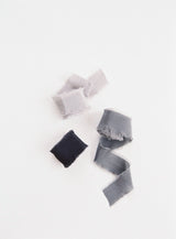 The Smoke Collection consists of Stone, Slate, and Charcoal. Our Classic Ribbon Collections are the perfect color combination for your wedding, event, photoshoot, workshop, or styling kit. The Classic Ribbon is soft in hand, and more substantial in weight than most silks. Because of the texture, the sheen is more subtle, creating a matte-like finish.